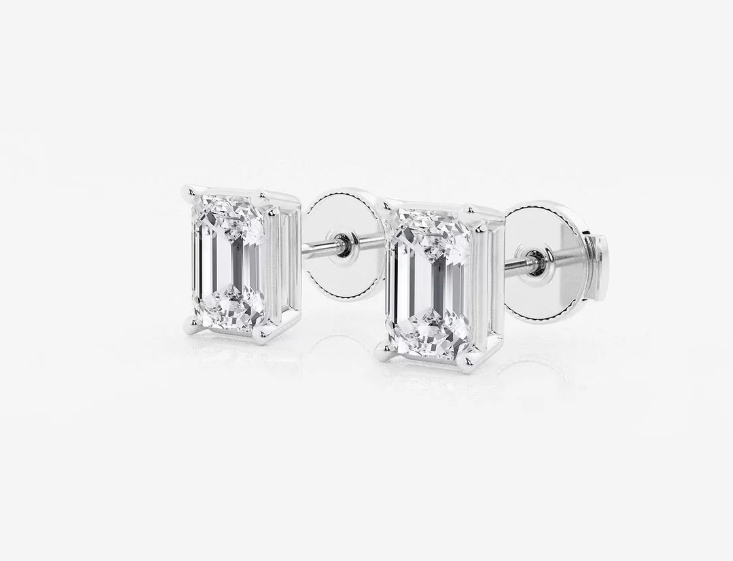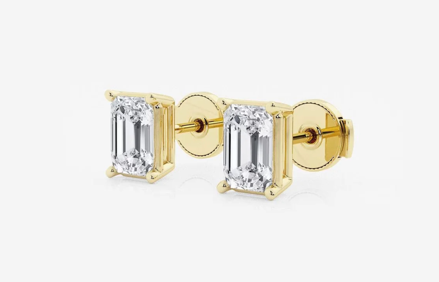 Emerald-cut lab diamond studs deliver effortless elegance—crisp, elongated lines and a sophisticated, mirror-like shine!